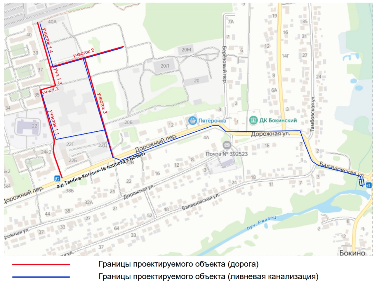 Строительство автомобильной дороги по ул. Советская и ул. Запрудная в границах микрорайона "Донской" в Тамбовском районе Тамбовской области